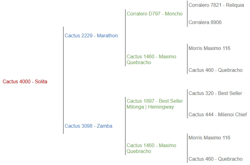 Donante que se destacó desde ternera, al igual que su medio hermano Red Dollar. Posee una estructura inigualable, con excelente corrección, femineidad y manto carnicero. Su padre, Marathon, es líder absoluto en DEPs de la raza; y su madre, Zamba (hija de Rosario), proviene de una línea materna impecable, lo que otorga a Solita una consistencia genética superior.