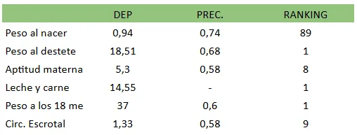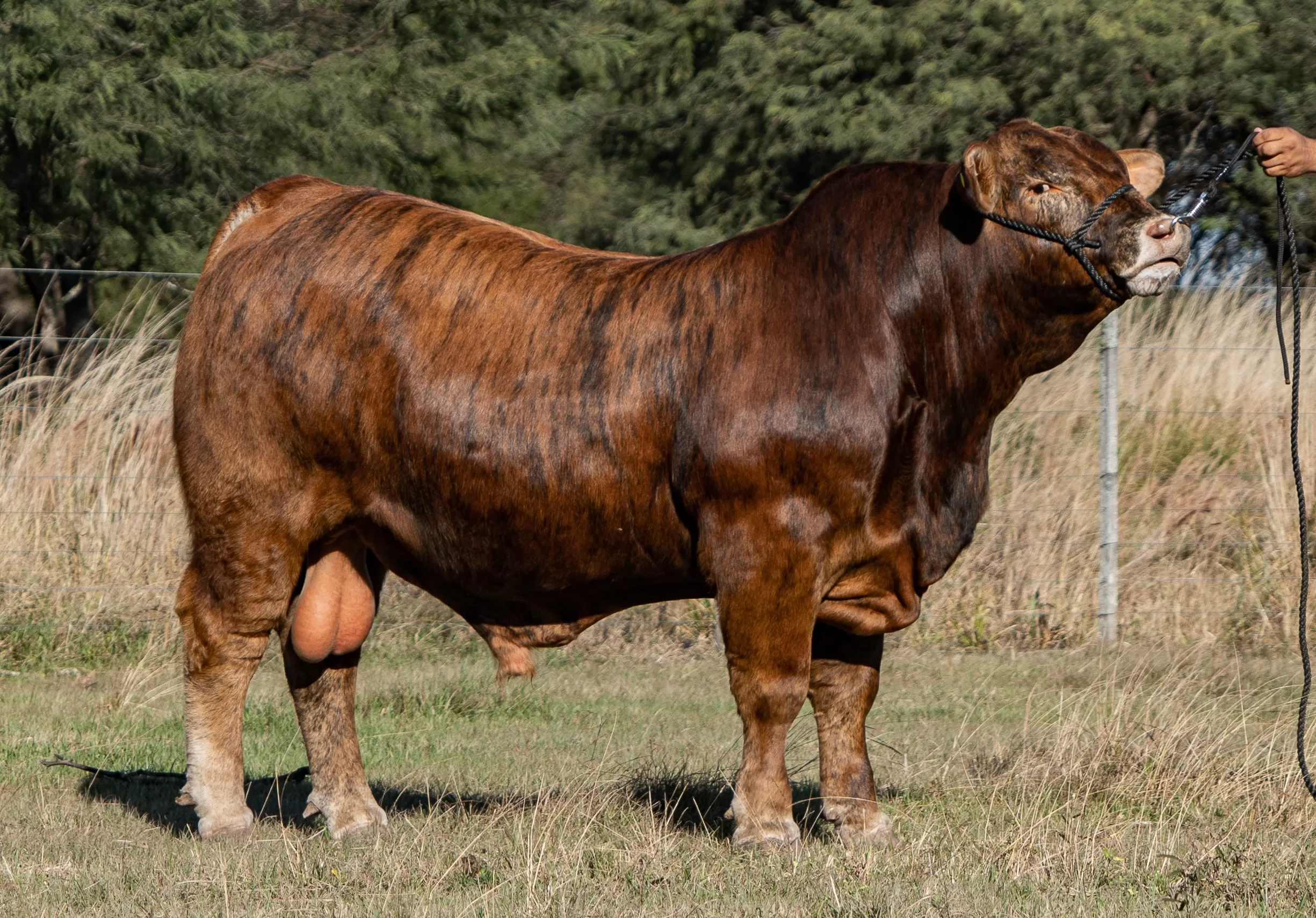 Es un toro muy precoz, ancho, con un importante cuarto trasero, una línea inferior muy correcta y un buen y ágil desplazamiento.