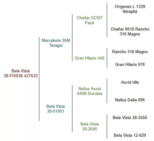 Es hijo de la mejor donante de la Cabaña, la 01001, que combina a Dundee con una línea genética de larga data de Bela Vista. Por el lado paterno, es hijo de TARAGüI, Gran Campeón de la Nacional en Argentina 2019.